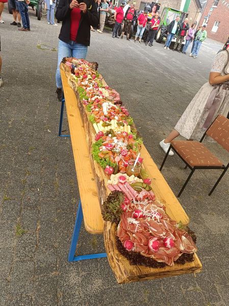 Der Sonntag begann mit einer Neuerung: Unter dem Motto „Zwei Vereine – ein Dorf“ trafen sich die Schützen am Sportplatz, um gemeinsam in Tracht einen Almabtrieb bis zum Kirmesplatz zu gestalten. Begleitet wurden sie dabei von den Treckerfreunden Kranenburg. Am Festplatz angekommen, erwartete die Besucher eine großzügige Jausenplatte, liebevoll zubereitet von Max Schütze dem Leiter der Männer-Kochgruppe. Für musikalische Unterhaltung sorgten die Heybergmusikanten Honsi und Claus. Parallel dazu konnten die Besucher bei Spielen zeigen, was in ihnen steckt – besonders das Bullriding sorgte für viele Lacher, als der eine oder andere den Halt verlor. Auch beim Wettmelken zeigte sich der Kampfgeist. Den Abschluss des Wochenendes bildete DJ Claus, der bis in die Abendstunden für ausgelassene Stimmung sorgte.